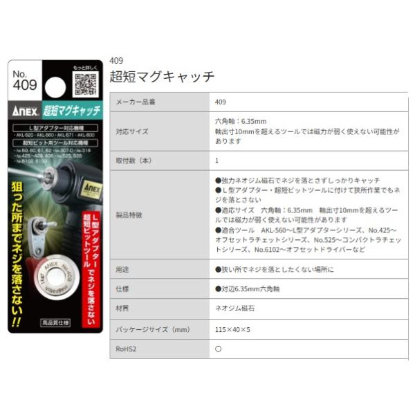アネックス No.409 超短 マグキャッチ ANEX 兼古製作所 094348 ネコポス可 '