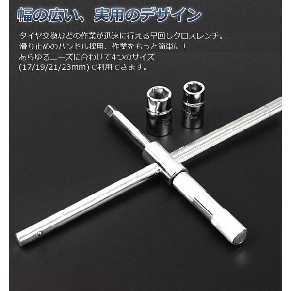 十字レンチ クロスレンチ 分解式 T字 十字 空転式 回転可能 フリーグリップ 早回し 17mm 19mm 21mm 23mm 車 タイヤ交換