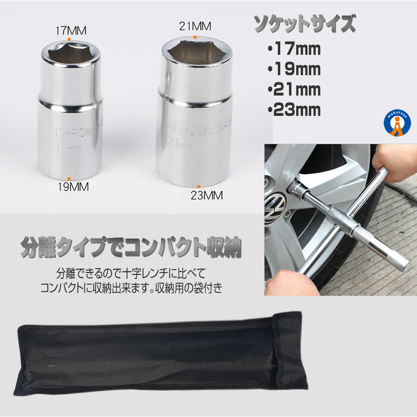 2個セット クロスレンチ 分解式 タイヤ交換 車用 十字 17mm 19mm 21mm 23mm 付替 カー用品 コンパクト 分離タイプ メンテナンス T字 XROSSL