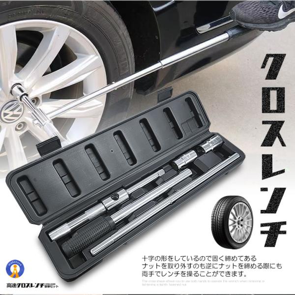 クロスレンチ 自動車 車 十字レンチ メンテナンス タイヤ タイヤ交換 分解式 T字 十字 空転式 4SETRENCHI