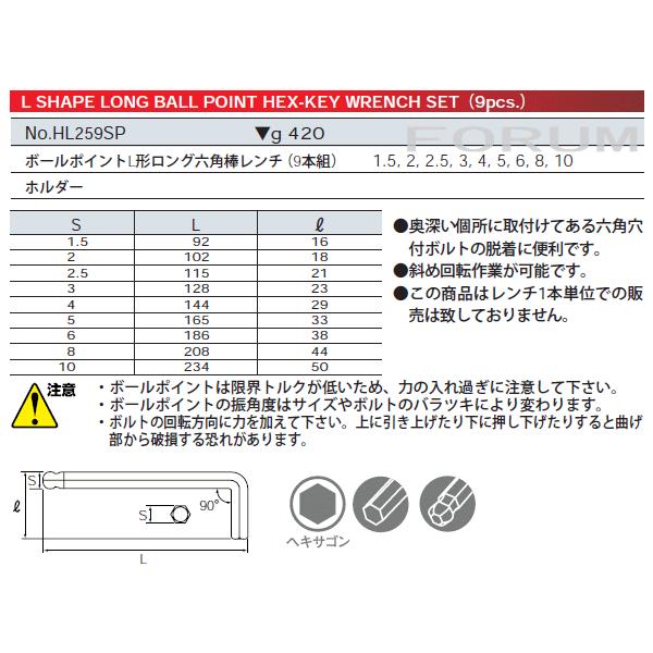KTC 【レビューを書いて送料無料】 ボールポイントL形ロング六角棒レンチセット 9本組 HL259SP / ヘキサゴンレンチ / 6角レンチ
