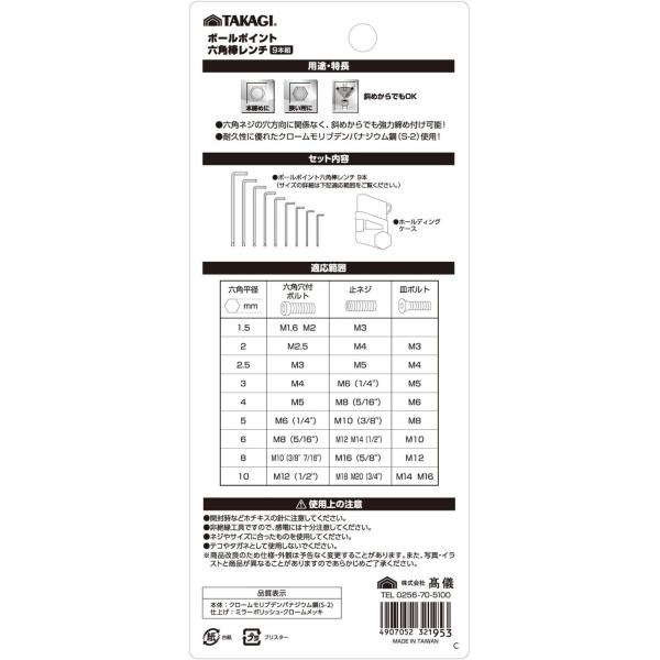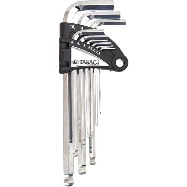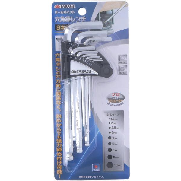 高儀 TAKAGI ボールポイント 六角棒レンチ 9本組 グレー【穴方向に関係なく、斜めからでも強力締付け可能】六角レンチ セット 6角 アーレンチ