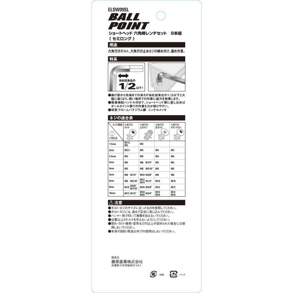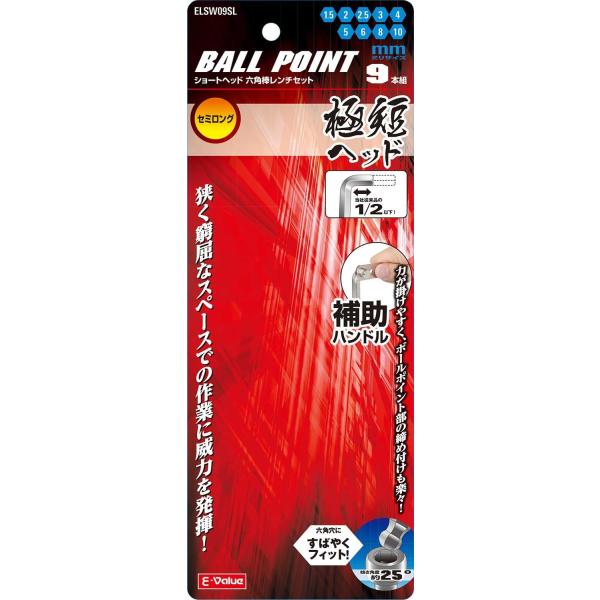 E-Value ショートヘッド 六角棒レンチセット セミロング 9本組 ELSW09SL