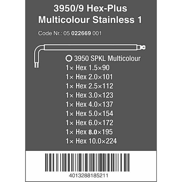 Wera ステンレス六角棒レンチセット【9本組】3950/9 Hex-Plus Multicolor1 022669
