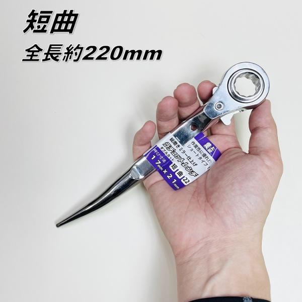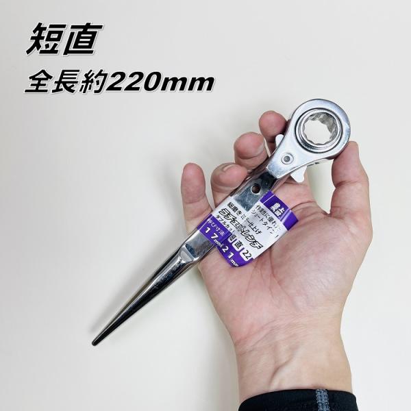 【ダブルカット仕様】蕨上田 特注 ラチェット 総磨きラチェットレンチ 17mm×21mm ダブルカット カラビナ掛け可 短直/短曲 ミラー仕上げ