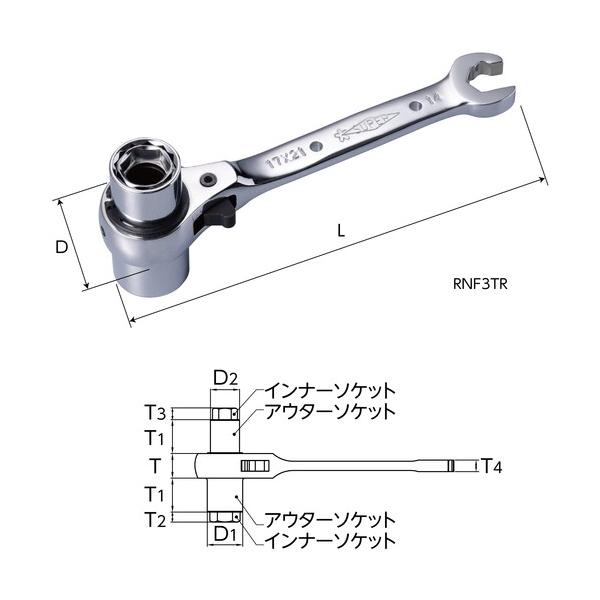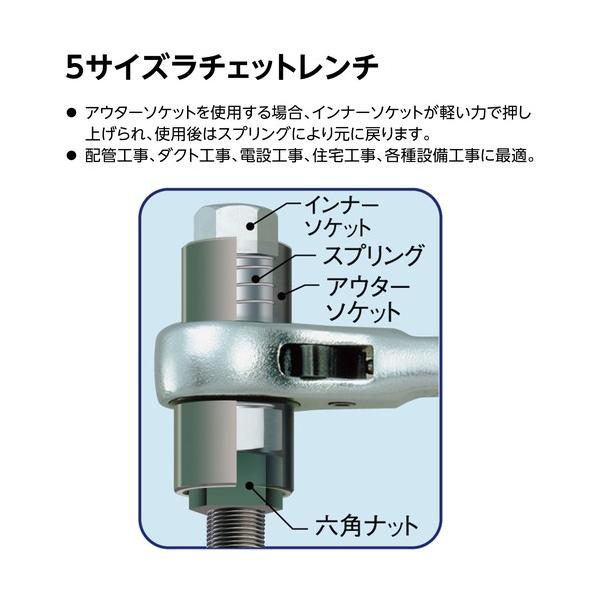 スーパーツール 5サイズラチェットレンチ シルバー 166mm RNF0TR 1丁