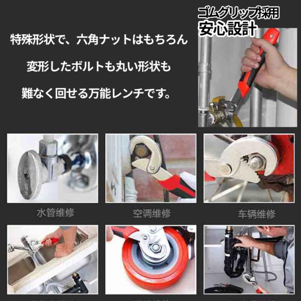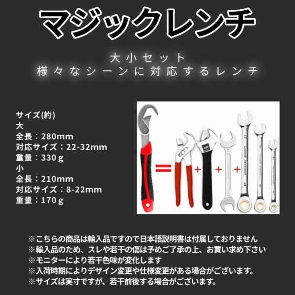 レンチ 万能 マジックレンチ 大小 2本 セット モンキーレンチ パイプレンチ スパナ 工具 蛇口 配管 工事 大工 パイプ ボルト ナット DIY アジャスタブル BANREN
