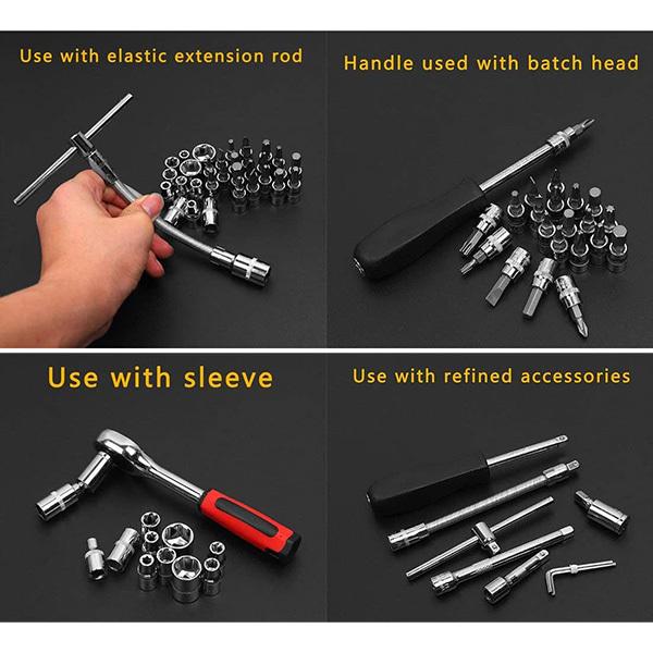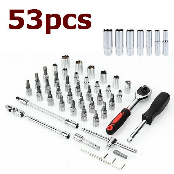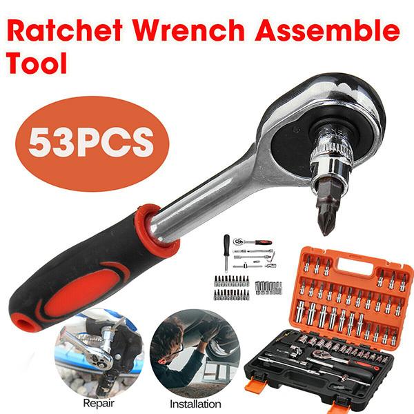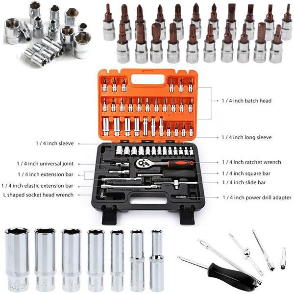 53pc 1/4 "(6.35mm) ソケット ラチェットレンチツールセット 自転車バイク メンテナンス T153