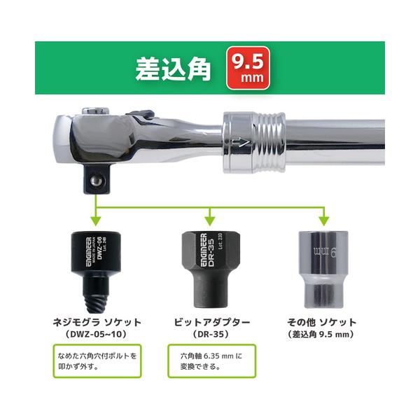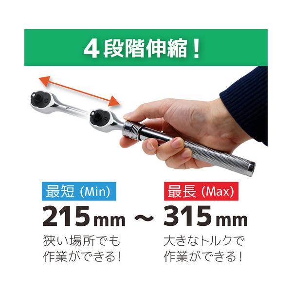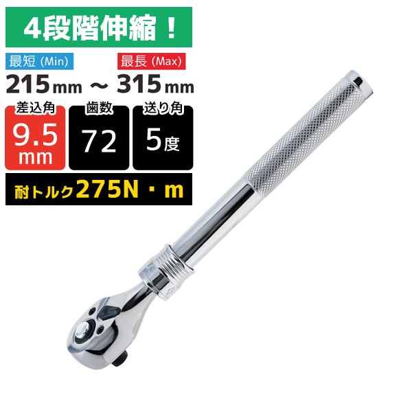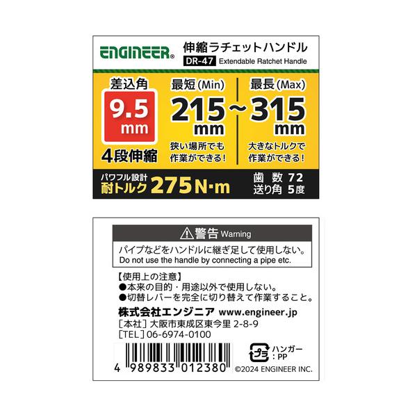 エンジニア ENGINEER DR-47 伸縮ラチェットハンドル 差込角9.5mm 215〜315mm DR-47