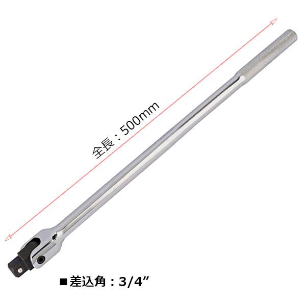 3/4" 全長500mm 業務用頑丈ロングスピンナハンドルバー (ブレーカーバー) T500