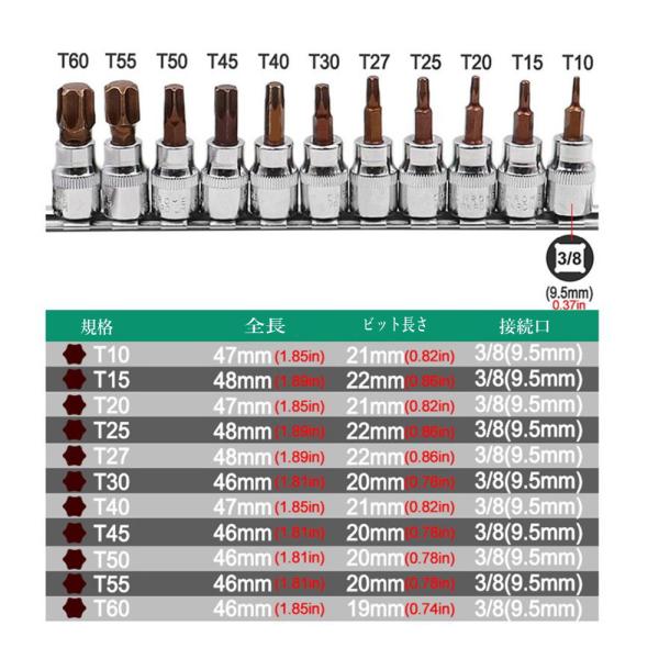 トルクス ビットソケット 単品 T10/T15/T20/T25/T27/T30/T40/T45/T50/T55/T60 高トルク対応 ソケットレンチ用 ネコポス