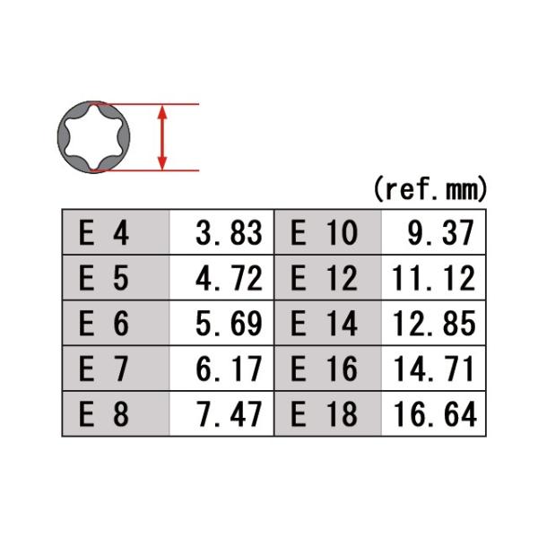 E型トルクスソケットセット 星型 花型 ソケットレンチ 雌トルクス 主要10サイズ E4 E5 E6 E7 E8 E10 E12 E14 E16 E18 ソケットレール付 クリックポスト発送