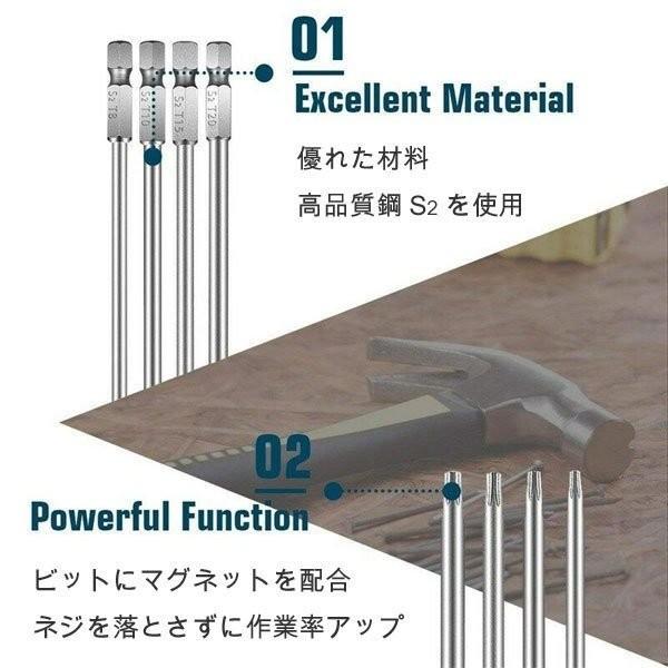 いじり止め付きトルクスビットセット 高品質 S2鋼材 ロング TRX T8 T10 T15 T20 T25 T27 T30 T40 磁力付 トルクスレンチ 電動ドライバー クリックポスト発送