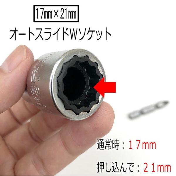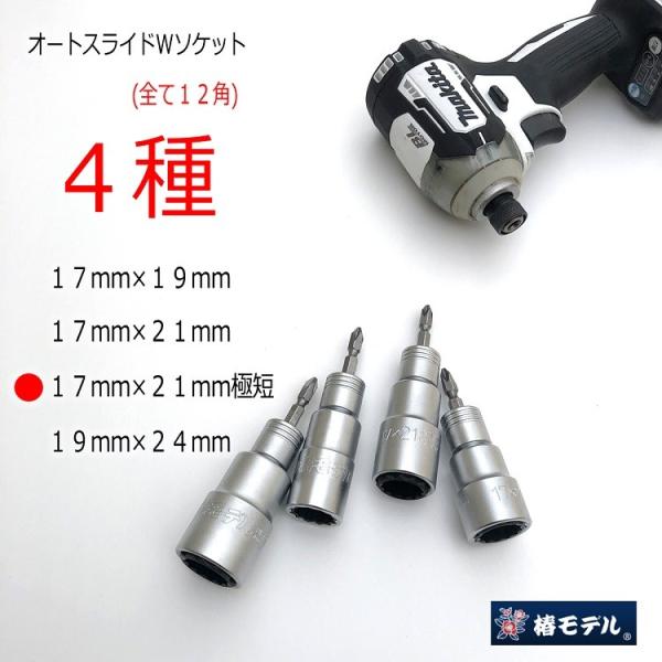 椿モデル インパクトドライバー用 ダブルソケット BW1721SS-12K 極短 17mm×21mm ビット交換式 仮締ソケットオートスライド 12角