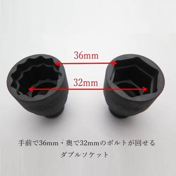 椿モデル インパクトレンチ用 ダブルソケット 6角 12角 PWS3632 36mm×32mm 仮締め用 インパクトソケット インパクト関連アクセサリー