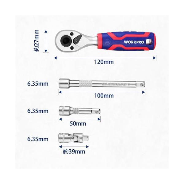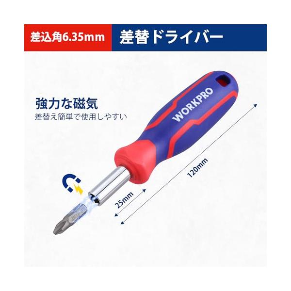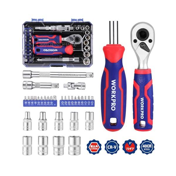 WORKPRO ビットラチェットセット ソケットレンチセット ドライバー セット 34点組 差込角6.35mm(1/4インチ) 両用ヘッド ミニ