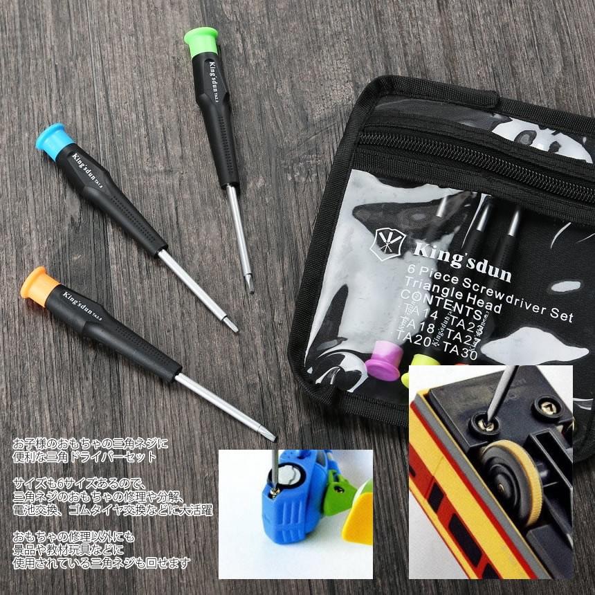 2個セット 三角 ドライバー セット 三角ネジ 用 子供 おもちゃ 特殊 精密 マグネット 6サイズ プラレール 交換 分解 ゴム タイヤ 交換 修理 工具 便利 MA-261