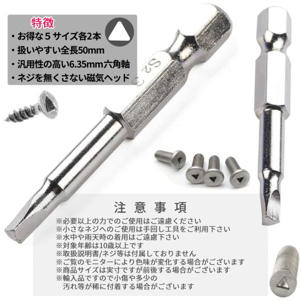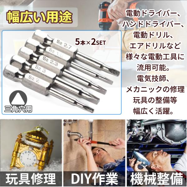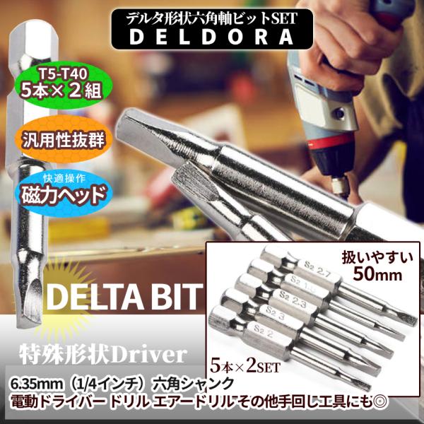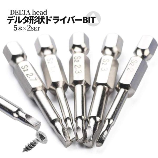 三角ドライバー ドライバー ビットセット 5本 2セット 三角ネジ 三角 デルタ ドライバービット 三角形 ビット 六角軸 6.35mm 電動ドライバー 工具 2-DELDORA