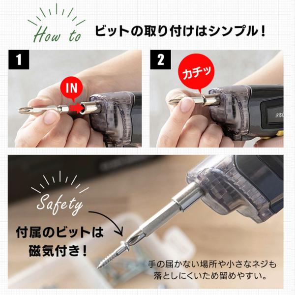 JDD352-H アイリスオーヤマ 充電式電動ドライバー 3.7V グレー/マスタード ビット10種類付属 最大締付トルク3.5N・m 電動工具 LEDライト付き