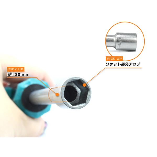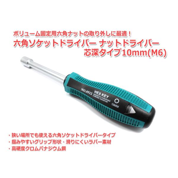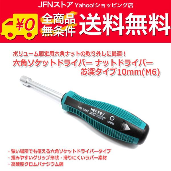 送料無料/ 六角ソケットドライバー ナットドライバー 芯深タイプ 10mm(M6)