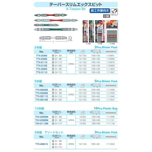 SUNFLAG 新亀製作所 テーパースリムエックスビット 両頭 2本組 鉄工作業向き H級 +2×65mm TTX-2065 219486 新品