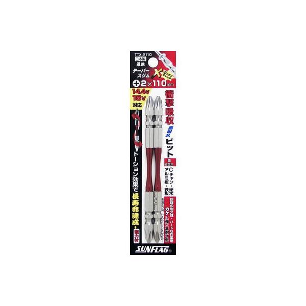 SUNFLAG 新亀製作所 テーパースリムエックスビット 両頭 2本組 鉄工作業向き H級 +2×65mm TTX-2110 219488 新品