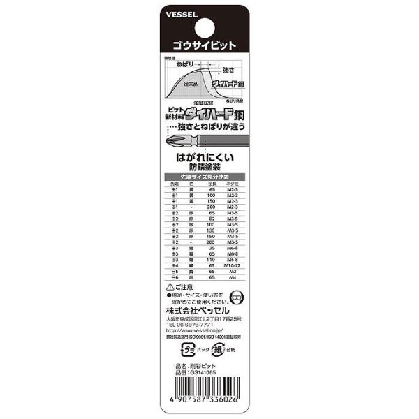 VESSEL ベッセル ドライバービット 両頭 剛彩ビット +1×65 2本 GS141065 558346 新品