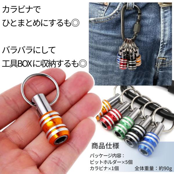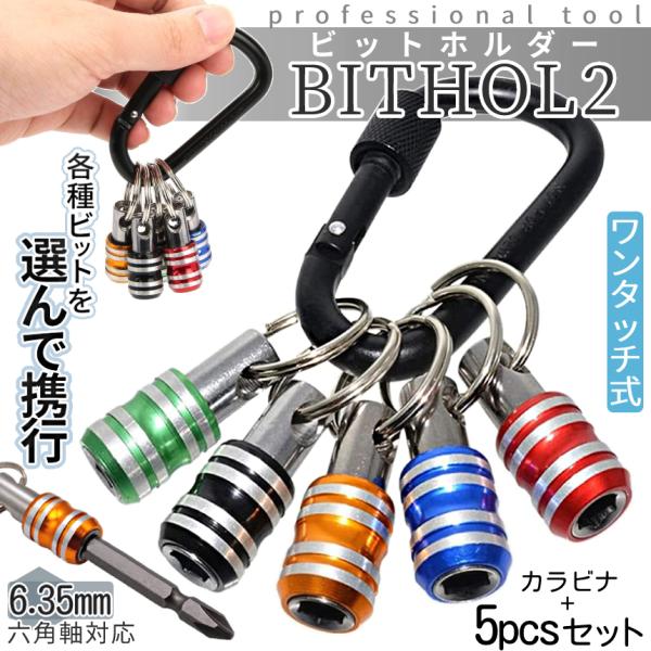 ビット ホルダー ソケット クイック キャッチャー 5個 カラビナ 6.35mm 引き上げ 軽量 落下 紛失 防止 電動 ドライバー インパクト 先端 工具 DIY BITHOL2