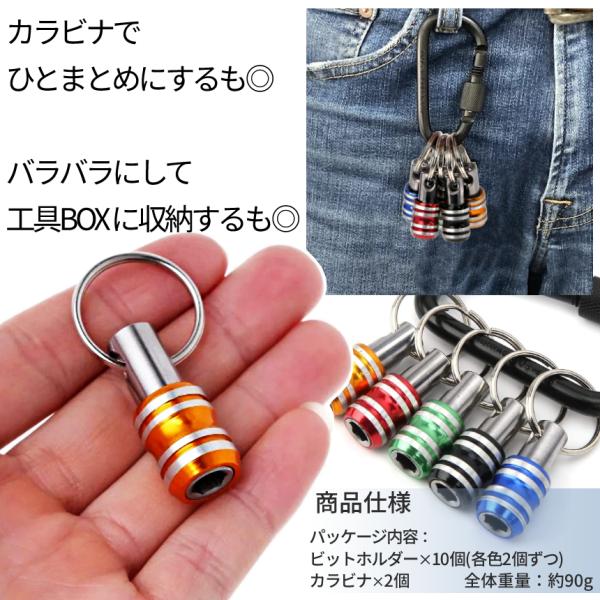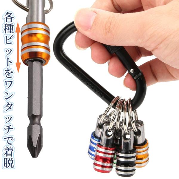 ビット ホルダー ソケット クイック キャッチャー 5個 2セット カラビナ 6.35mm 引き上げ 軽量 落下 紛失 防止 電動 ドライバー インパクト 工具 DIY 2-BITHOL2