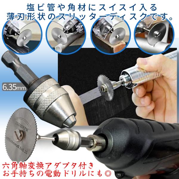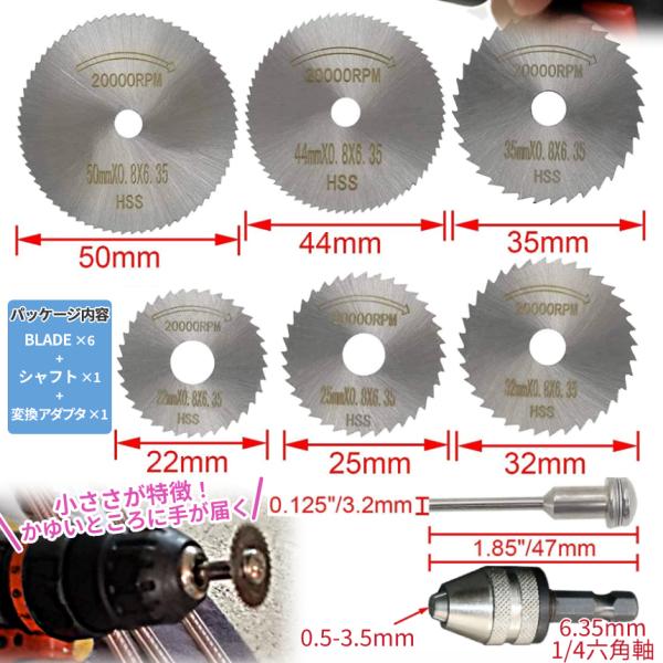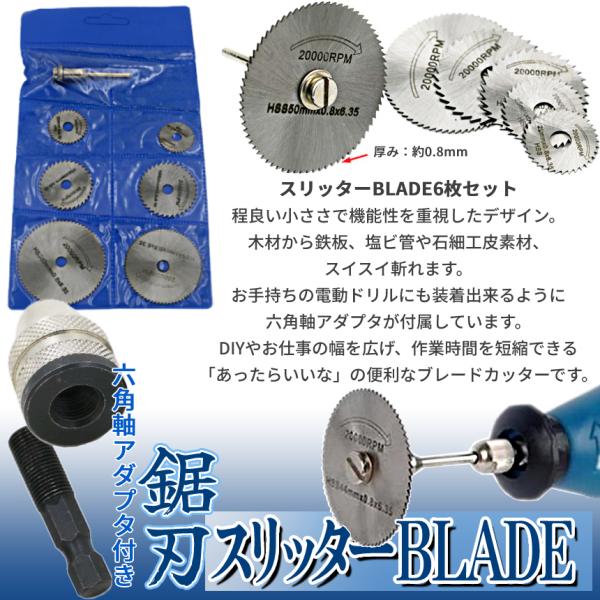 スリッターブレード 6枚 セット 鋸刃 丸鋸刃 スリッター ブレード カッター ディスク 六角軸 アダプタ 付き 切断 高速度鋼 スリット 塩ビ 鋸 工具 DIY SETUCA