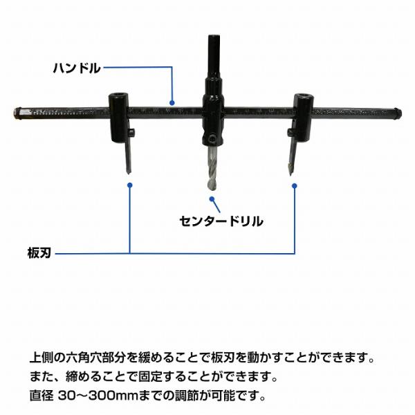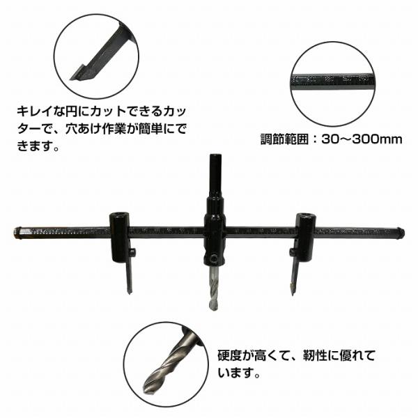 最大30cm 自在錐 サークル カッター 30mm-300mm 木工 自由錐 電動 ドリル コンパス インパクトホールソー 穴開け ダクト 配管