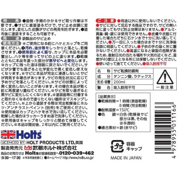 ホルツ 補修用品 錆止め&転換剤 サビチェンジャー ハケ塗りタイプ 200g Holts MH1116 サビ取り不要