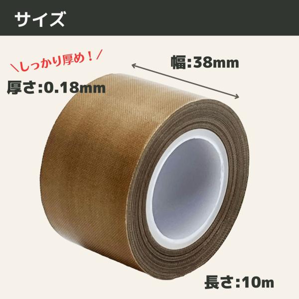 テフロンテープ フッ素樹脂粘着テープ 38mm×10m しっかり厚め 耐熱テープ 絶縁テープ 耐薬品 滑る PTFE HATUSOKU