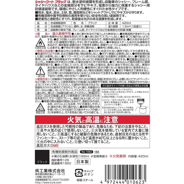 KURE(呉工業) シャシーコート ブラック (420ml) シャーシ用防錆塗装剤 [ 品番 ] 1062 [HTRC2.1] 単品