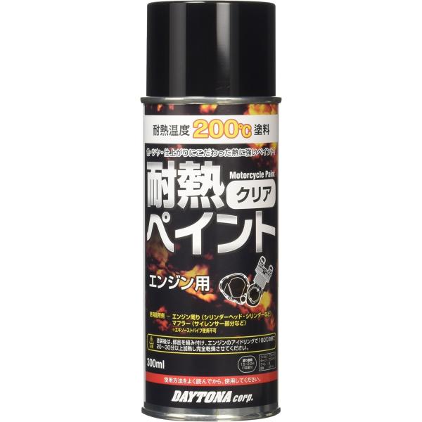 デイトナ(Daytona) バイク用 缶スプレー 300ml 耐熱ペイント エンジン用 耐熱温度200度 つや消しクリア 68113 エンジン用/クリア