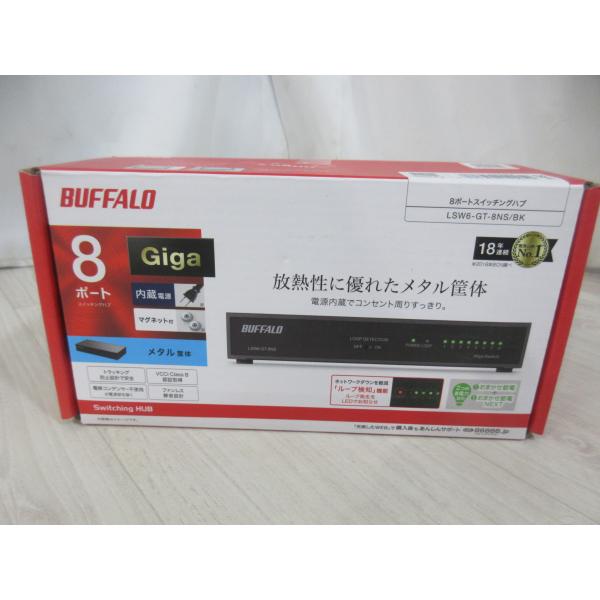 新品 BUFFALO スイッチングハブ Giga対応 金属筐体 電源内蔵モデル 壁掛け 背面マグネット おまかせ節電 LSW6-GT-8NS/BK [9298]