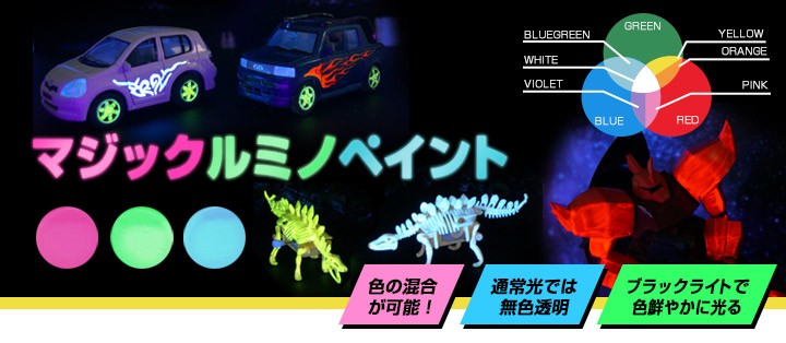 【BONUS+5%】 マジックルミノペイント 50g×3色セット (シンロイヒ/水性透明発光塗料)