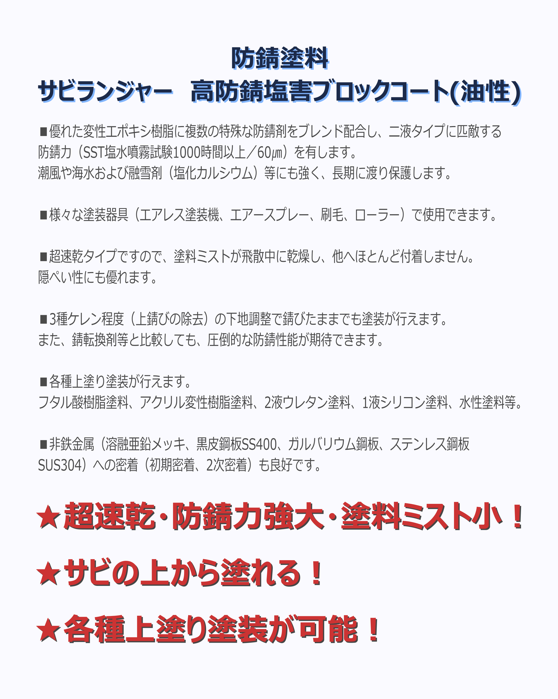 サビランジャ― NS-3301M 艶消ブラック 1kg/4kg/15kg 高防錆塗料 一液型 超速乾 ノンブリード 潮害 融雪剤対応 サビ止め シャーシ塗装用 セントラル産業