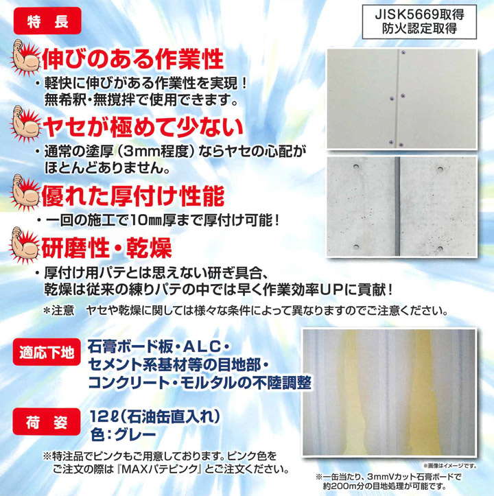 【BONUS+5%】 クリンナ MAXパテ グレー 12L (メーコー 内部用 一般形厚付け用 下地調整材)