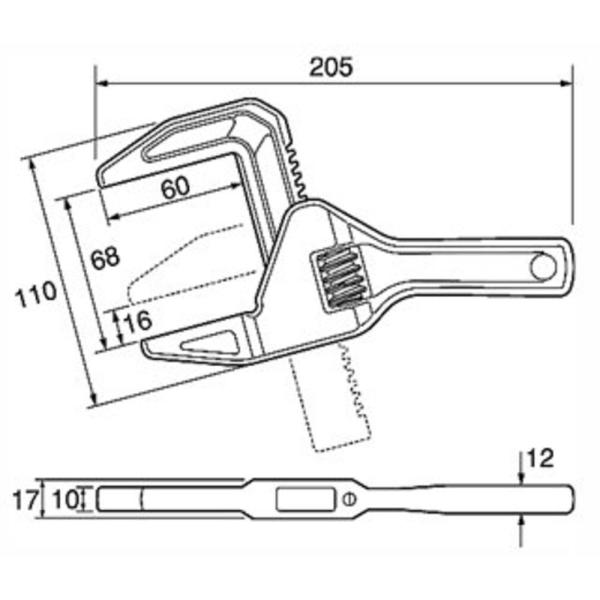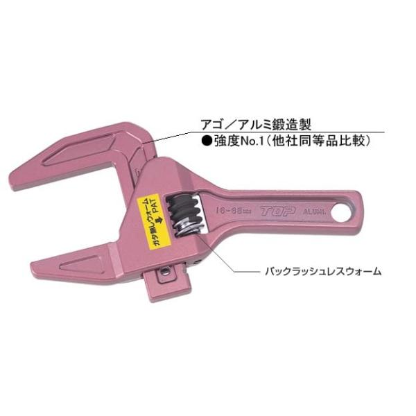 トップ工業 (TOP) ショートトラップレンチ たて型 アルミモーターレンチ 口開き16~68mm 水道 水栓 メッキ配管 TMWS-1668 燕三条
