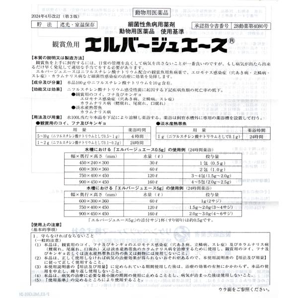 動物用医薬品 観賞魚用魚病薬 ニチドウ エルバージュエース 10g(5g×2包) 薬効3〜5日間 水草不可 エロモナス感染症 カラムナリス病