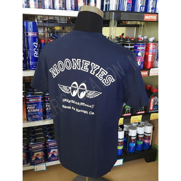 MOONEYES ムーンアイズ TM006 Tシャツ Fly with MOON ネイビー 半袖 USサイズ