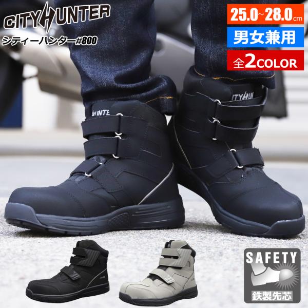 ライディングシューズ スニーカー メンズ レディース バイク ミドルカット 鉄先芯入り 6サイズ 2カラー CITY HUNTER