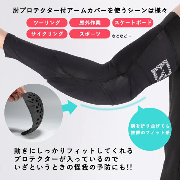 バイク アームカバー プロテクター付き UVカット UPF50+ 冷感 メンズ レディース スポーツ ロックブロス