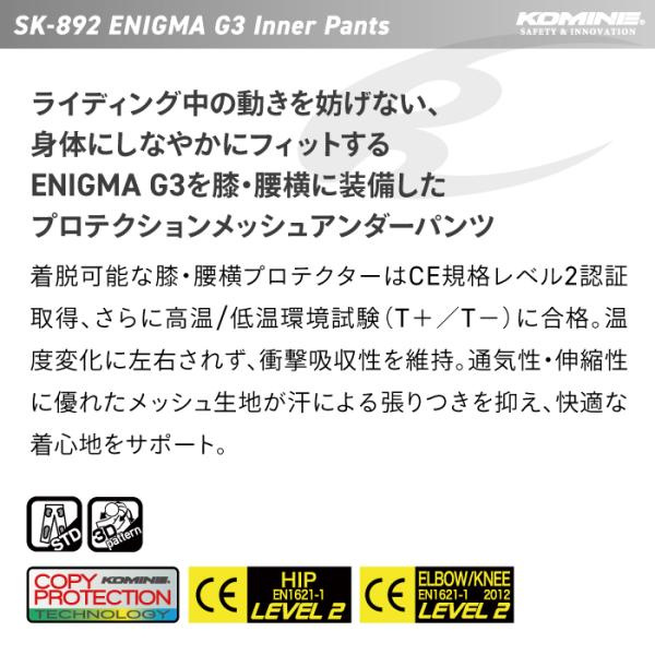 コミネ プロテクター SK-892 エニグマG3インナーパンツ KOMINE 04-892 バイク CE規格認証 2026年春夏モデル