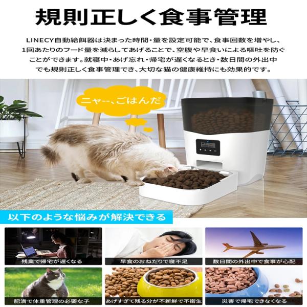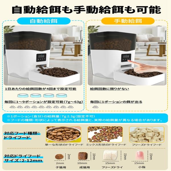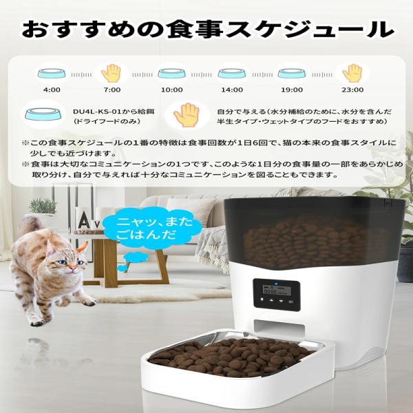 自動給餌器 猫 中小型犬用 4L大容量 定時定量 1日4食 自動餌やり機 手動給餌可 録音可 タイマー式 ステンレス製ボウル WAY給電 清潔 便利