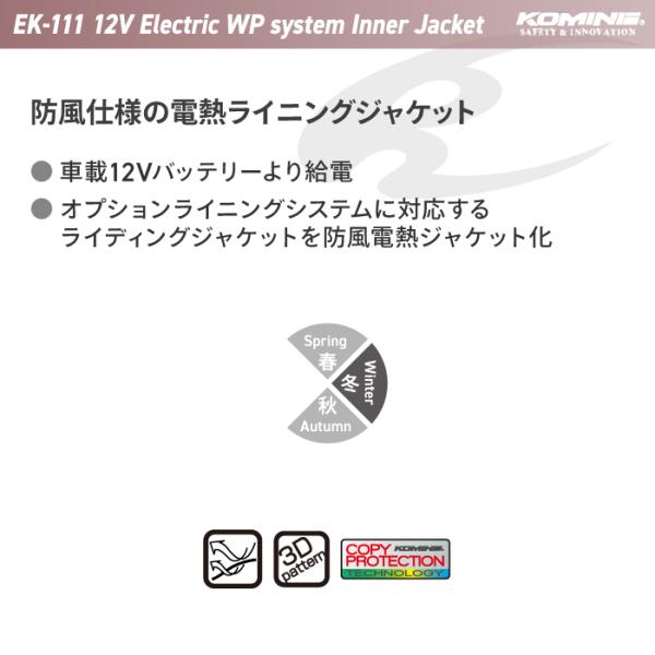 コミネ EK-111 12V エレクトリックウインドプルーフシステムインナージャケット KOMINE 08-111 バイク 電熱インナー 秋冬