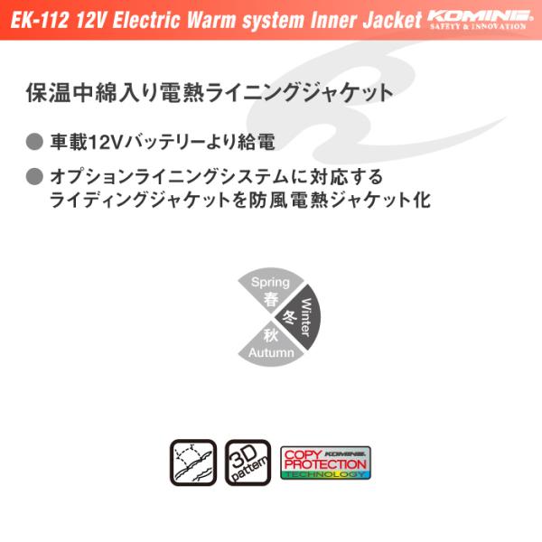 コミネ EK-112 12Vエレクトリックウォームシステムインナージャケット KOMINE 08-112 電熱 バイク 秋冬
