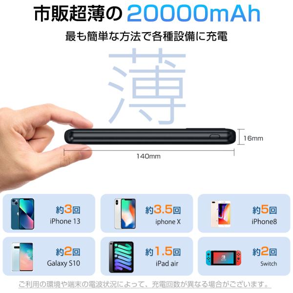 モバイルバッテリー 大容量 軽量 薄型 20000mAh 電熱ベスト用 3台同時充電 PSE 5v/2a スマホ携帯充電器 USB-A+Type-C入出力ポート iPhone Android 2026