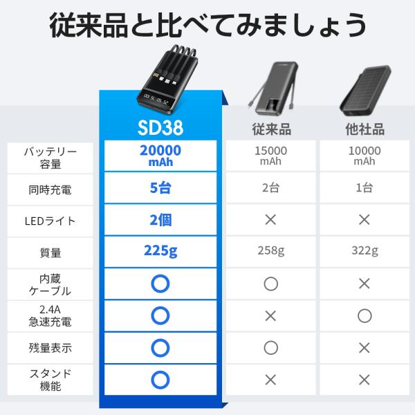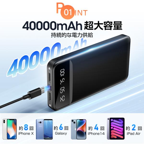 モバイルバッテリー 40000mAh ライト付き スマホ充電器 電気ベスト iPhone 大容量 薄型軽量 5台同時充電 急速充電 5v/2.4a 4本ケーブル内蔵 iPhone Android